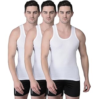 Dollar Bigboss Men’s White Pack of 3 Solid Cotton Regular Vest