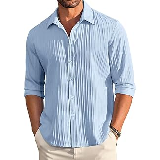CB-COLEBROOK Men’s Casual Button Down Shirts Long Sleeve Linen Shirt Fashion Textured Beach Summer Shirt