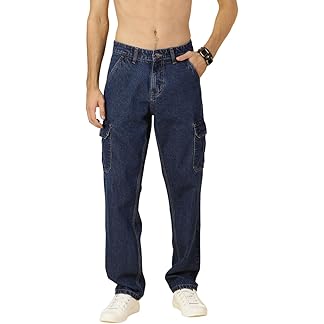 AVANOVA Bell-Bottom Men Cargo Jeans II Men Cargo Pants II Denim Cargo for Men II Cotton Pant II Wide Legs II Flap Pockets II Cargo for Men (Jeans-119)