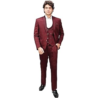 Royal Rich Men’s Regular Fit Three Piece Suit, Coat Pant Set with Waist Coat