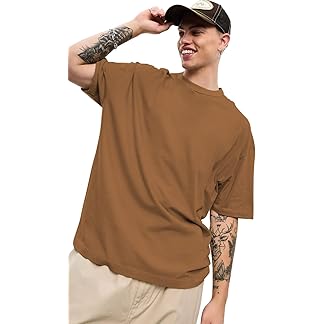 CHKOKKO Oversized Solid Round Neck Tshirts for Men