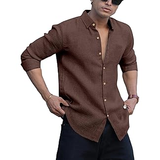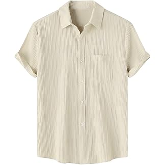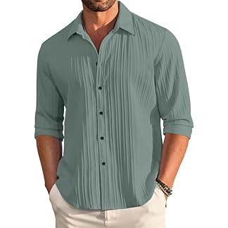 FINIVO FASHION Men’s Casual Cotton Plain Button Down Shirt Long Sleeve Textured Summer Beach Shirt for Men