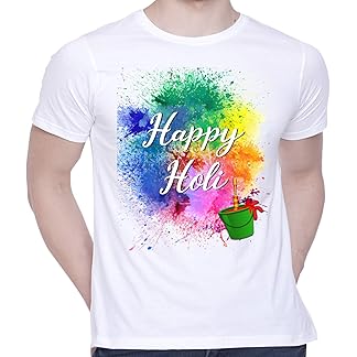 CreativiT Graphic Printed T-Shirt for Unisex Happy Holi Tshirt | Casual Half Sleeve Round Neck T-Shirt | 100% Cotton | D00282-1
