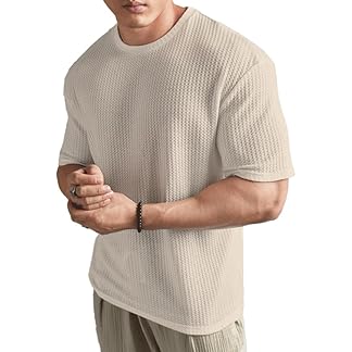 madfrog Men Solid Round Neck Polyester Blend Waffle Knit Down Shoulder Oversized T-Shirt for Men’s
