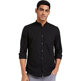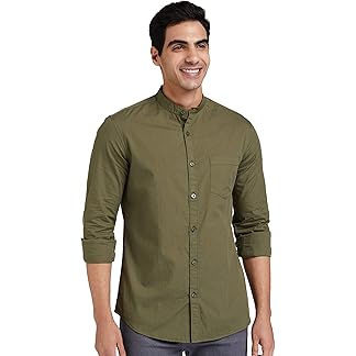 Amazon Brand – Symbol Men’s Solid Cotton Shirt | Chinese Collar | Casual | Plain | Full Sleeve | Summer-Regular Fit (Available in Plus Size)
