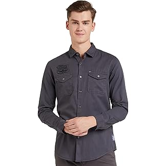 Amazon Brand – INKAST Men’s Double Pocket Cotton Shirt | Casual | Plain | Full Sleeve – Slim Fit (Available in Plus Size)