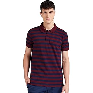 Amazon Brand – Symbol Men’s Cotton Rich Striped Polo T Shirt | Collar Tshirts | Half Sleeves – Regular Fit (Available in Plus Size)