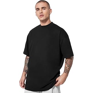 SHODOX Mens Solid Dotted Unique Design Oversized Tshirt for Men – Round Neck Loose Fit Drop Shoulder Mens T-Shirt