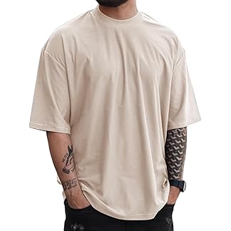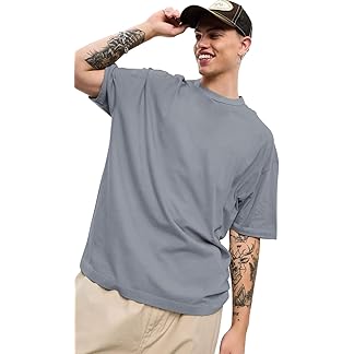CHKOKKO Oversized Solid Round Neck Tshirts for Men