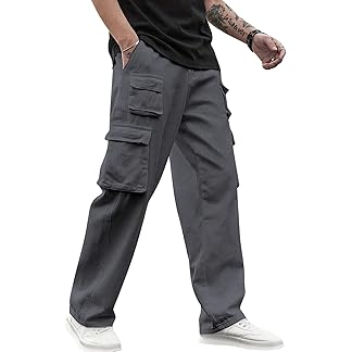 Casual Feel Cargo Joggers for Men – Cotton Loose Fit Utility Pants with 6 Pockets | Durable Outdoor & Hiking Trousers