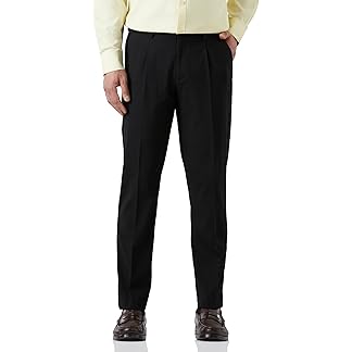 Amazon Brand – Symbol Men’s Pleated Stretchable Formal Pants |Half-Elasticated | Regular Fit (Available in Plus Sizes)