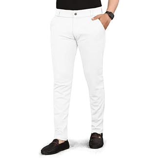 DENU’S ENTERPRICE Men’s Lycra Slim Fit Formal Trouser Pant | Lycra Trouser | Formal Pant | Regular Lycra Pant White