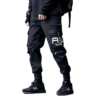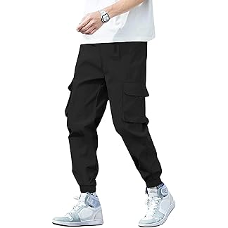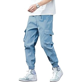 Aahwan Men’s Solid Drawstring Waist Flap Pocket Side Cargo Pants…