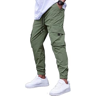 Aahwan Men’s Solid Drawstring Waist Flap Pocket Side Cargo Pants…