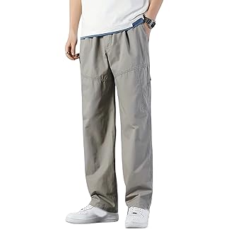 SMOWKLY Men’s Premium Cotton Blend Relaxed Fit Casual Trouser || Flexible Elastic Waist with Drawstring || Comfortable Pant for Sweatpant & Casual Wear