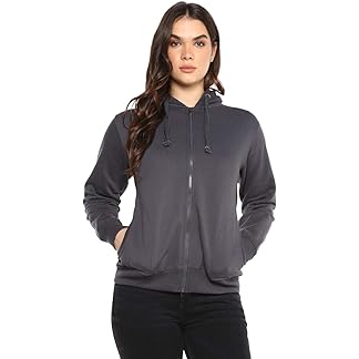 Alan Jones Clothing Women’s Solid Zipper Hooded Sweatshirt | Front Zip, Ribbed Hem, Lined Hood, Casual Winter Wear