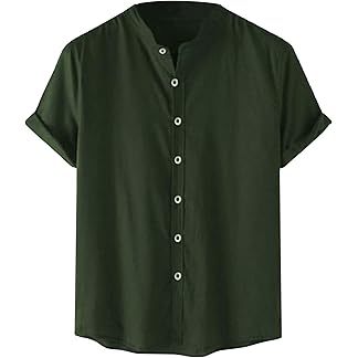 DEELMO Men’s Casual Button Down Shirts Long Sleeve Linen Shirt Fashion Textured Beach Summer Shirt