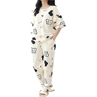 Celary Women’s Cotton Printed Night Suit Set||Soft & Breathable Short Sleeve Top & Ethnic Print Pyjama Set||Korean Night Suit||Comfortable Home Wear & Sleepwear||Also Available in Plus Size