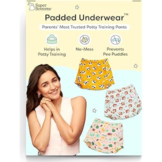 SuperBottoms Padded Underwear for Babies & Toddlers (1-2 Years), 3 Layers of Premium Cotton & DryFeel Layer, Ideal for Diaper-Free Time & Mess-Free Potty Training Pants, Pack of 3