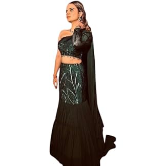 VIBRANTATTIRE Boutique Style Faux Georgette Sequin Work Ruffle Lehenga Set – Full Stitched 6m Flair with Cancan, Blouse up to 44″ & Attached Ruffle Dupatta