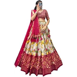 Women’s Trending Designeer Tussar Silk Lehenga Choli Print with Foil Work With Unstitched Blouse Patola Print Adorned with Foil Work For Navrati || Wedding