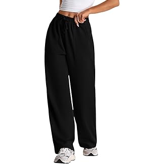 Q – RIOUS Women’s Wide Leg High Waisted Baggy Lounge Sweat Pants Drawstring Athletic Flared Joggers with Pockets