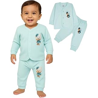 CUTE LANDINGS 0-3|3-6|6-9 & 9-12 Months New Born Baby Girls and Boys Front Open Full Sleeves Thermal Jhablas and Rib Pajamas Set|Top|Bottom|Infant|Toddlers|Winter Wear|Lower (Pack of 1)