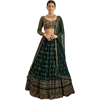 JIHU CULTURE Georgette Sequence Lucknowi Embroidery Work Semi sttiched Lehenga choli set for women