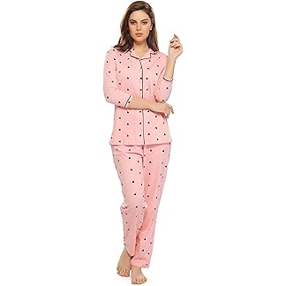 ZEYO Women’s Cotton Heart Printed Stylish Night suit set of Shirt & Pajama Set 5612