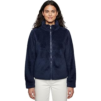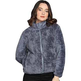 Alan Jones Clothing Women’s Fluffy Yarn Fleece Full-Zip Jacket | Soft Lightweight Warm Outerwear with Stand Collar & Piping at Hem & Cuffs