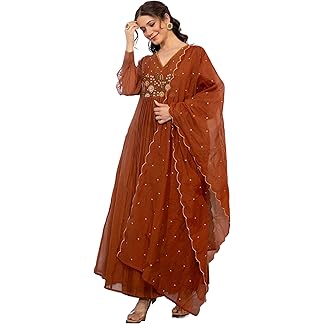 Nermosa Women Embroidery Solid Anarkali Kurta and Pant Set with Dupatta