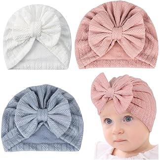 PALAY® 3pcs Cap for Baby Girl Boy, Lovely Bow Caps for Babies, Soft Warm Turban Baby Cap 0-3 Month, Stretchy Baby Girl 3-12 Months Infant Hat for Newborns Shower Gift