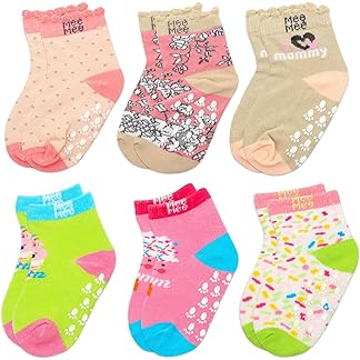Mee Mee Baby Socks |Cotton Anti-Skid | Pack of 6 Assorted Prints | Extra Thick Winter Socks for Infants & Toddlers | Soft, Warm, Breathable & Sweat-Resistant Fabric