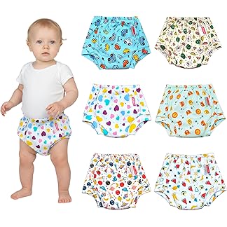 VParents Padded Underwear for Babies and Toddlers with 3 Layers of Cotton Padding Potty Training Pull Up & Diaper-Free Time Pack of 6 (1-2 years) Lion car Heart galaxy watermelon Fruitie