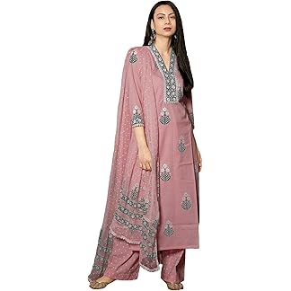 TRENDMALLS Women’s Cotton Embroidery Salwar Suit Set Kurta Pant with Dupatta Kurta Set for Women