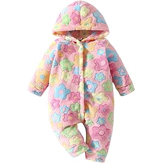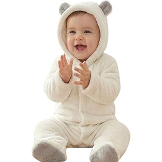 BABYZONE Fleece Footed Snowsuit Newborn Hooded Rompers Long Sleeve Onesies Button Closure Warm Infant Winter Outfits,Baby Boys Girls Snowsuit Pajamas Cute Bear Ear Bodysuits Outwear.