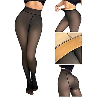 Prixelo Women’s Winter Fleece Leggings Lined Warm Tights – Fake Sheer Pantyhose Look, Thermal Leggings for Cold Weather, Stretchy & Comfortable Fit