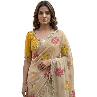 Kryone Collection Handcrafted Floral Embroidered Saree with Contrast Yellow Blouse