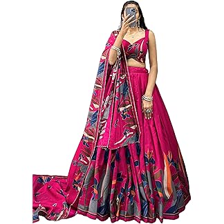 WELK Womens’ Wear Tussar Silk With Patola Printed Lehenga Choli With dupatta and unstitched blouse