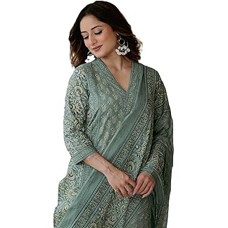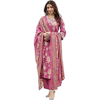 Libas Womens Printed Silk Blend A-Line Kurta With Palazzos and Dupatta