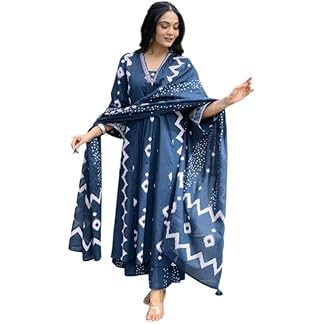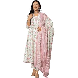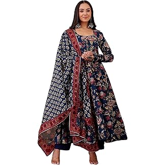 Amayra Women’s Cotton Printed Anarkali Kurta with Palazzo Pants and Dupatta