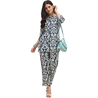 GoSriKi Women’s Rayon Viscose A-Line Printed Kurta with Pant