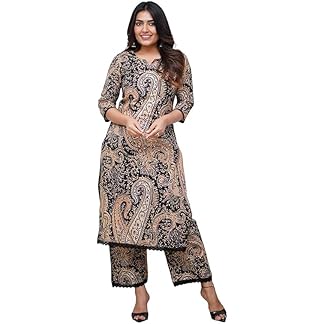 GoSriKi Women’s Cotton Blend Straight Printed Kurta with Pant