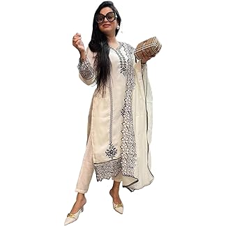 GoSriKi Women’s Rayon Blend Straight Embroidered Kurta with Pant & Dupatta