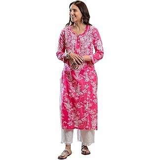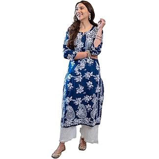 GoSriKi Women’s Cotton Blend Chikankari Embroidered Straight Kurta