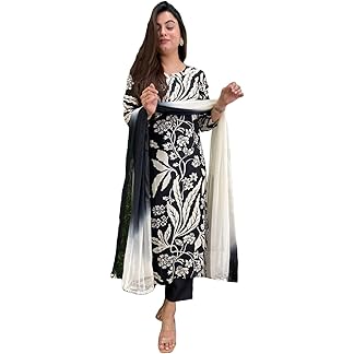 GoSriKi Women’s Rayon Blend Straight Printed Kurta with Pant & Dupatta