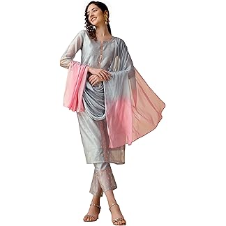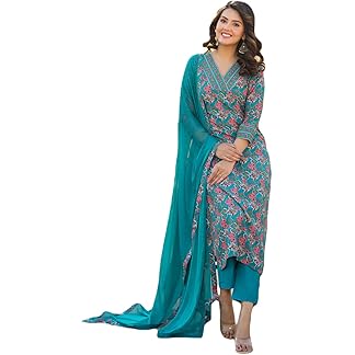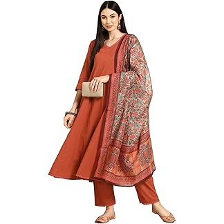 GoSriKi Women’s Cotton Blend Anarkali Printed Kurta with Pant & Dupatta