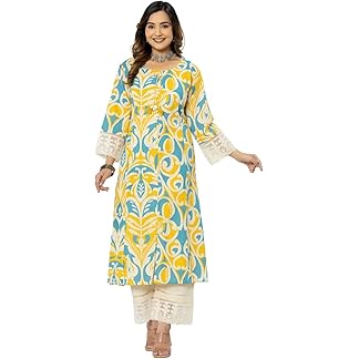 rytras Women’s Cotton Printed A-Line Kurta with Pant Set