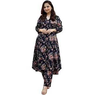 GoSriKi Women’s Rayon Blend A-Line Printed Kurta with Pant