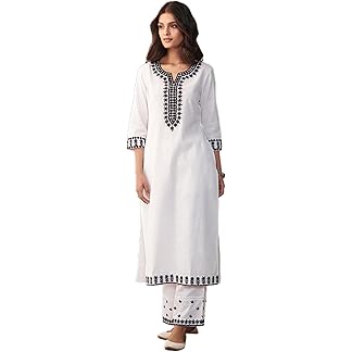 EVANTA Women’s Cotton Blend Embroidery Kurta with Pent Set (TBH-White)